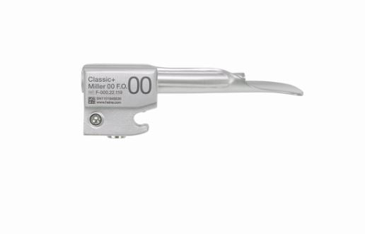 HEINE Classic+ FO Miller 00 er et vedligeholdelsesfrit laryngoskopblad lavet af rustfrit stål. Det har en tredobbelt forkromet overflade, der er nem at rengøre og passer til alle laryngoskophåndtag i overensstemmelse med ISO 7376 (grøn standard).