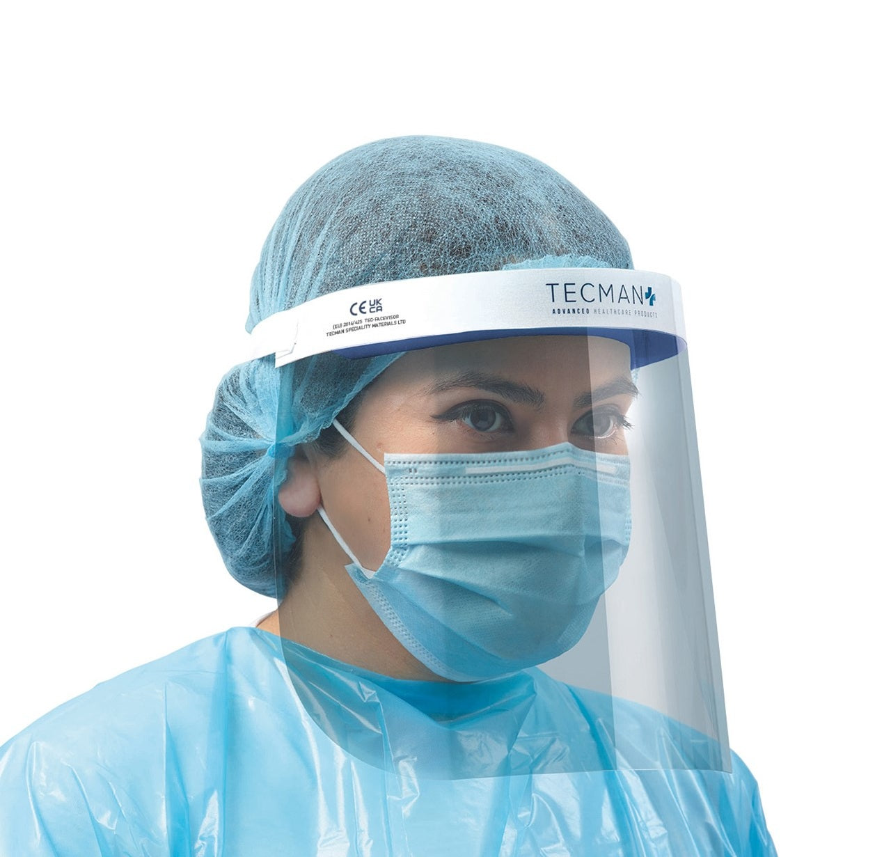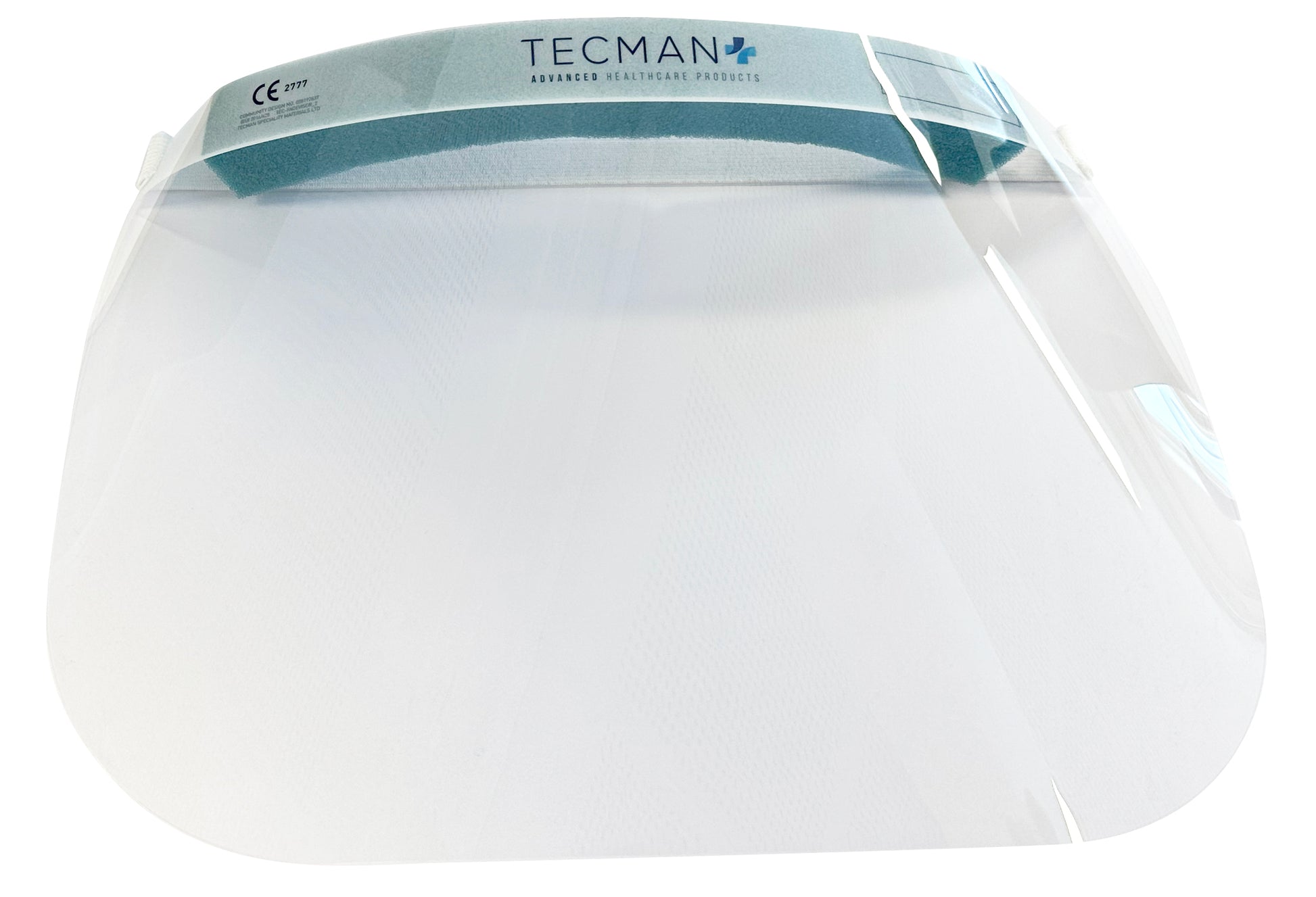 Tecmans lette ansigtsskærm med antidug-egenskaber beskytter ansigt og øjne mod stænk eller spray fra smitsomme eller farlige stoffer. Engangsansigtsskærmene er lavet af optisk klar polyester for maksimal synlighed. Den bløde elastiske rem og pandebåndet i PU-skum giver ekstra langvarig komfort og holdbarhed.